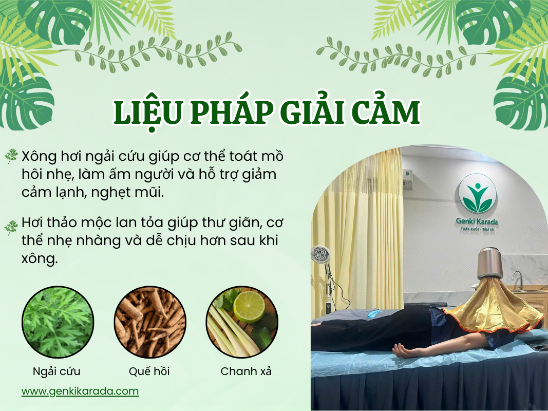 Liệu pháp giải cảm giúp cơ thể nhanh chóng hồi phục khi bạn cảm thấy mệt mỏi, ớn lạnh hay đau nhức nhẹ. Với các bước như xoa bóp, bấm huyệt, cạo gió hoặc giác hơi, cơ thể sẽ được làm ấm, lưu thông máu tốt hơn và giảm cảm giác khó chịu. Chỉ sau khoảng 30–60 phút, bạn sẽ thấy người nhẹ nhàng, dễ chịu hơn và khỏe khoắn trở lại.