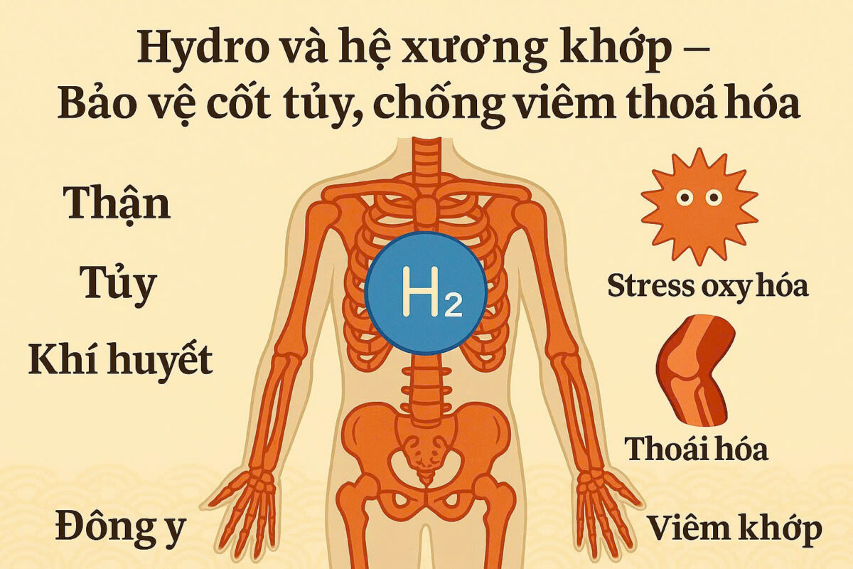Hydro, với cơ chế chống oxy hóa chọn lọc và giảm viêm, đang được nghiên cứu như một giải pháp mới để bảo vệ xương khớp, ngăn thoái hóa và cải thiện vận động.