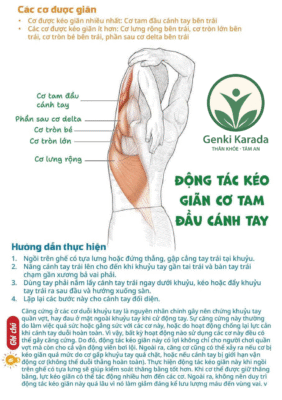 Thở: hít vào khi nâng tay, thở ra chậm khi dùng tay kia kéo khớp giãn.