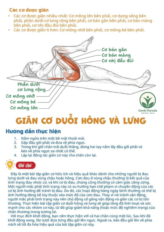 Một trong những phương pháp được giới chuyên gia phục hồi chức năng khuyến nghị chính là động tác giãn cơ dưới hông và lưng.